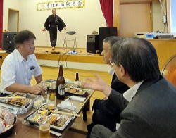 11:00の開園時には,参加者並びに副町長・県議・町議会議長もお越しいただき席に着かれていました。まず区長の開会宣言と来賓の方々のあいさつに続きトンボーさんの乾杯で開宴となりました。