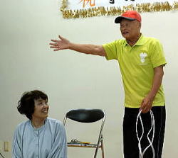 祭りの打ち上げの時酒力に任せて敬老会への参加要請を快諾してしまいお手伝いをさせていただきました。当日11:00から開園の予定でしたが,私が着いた10;30にはもう大勢の歌手たちが準備に余念がありませんでした。当然参加者の中では,私たち夫婦が最年少で一昔前なら十分祝ってもらえる側だとかんじながらの参加となりました。