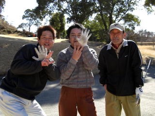 私の入った組は,inの最終組でメンバーは,最近ゴルフにイマイチ力の入らない4人組(昨年コースへ出たのは3回,まつば会には1年以上参加していないグリーン上のイカサマ師こと”おつぐ”さんと昨年コース5回で現在は,子供の学費稼ぎに余念のない空中のペテン師こと”伸二”と昨年コース3回で雪が降ったら仕事を休む低弾道の貴公子こと”修二”と昨年コース2回,最近はキャディさんを笑わせることだけに集中している”高弾道口先男”ことわたしの4人でした。