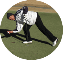そして迎えた16番の錦山名物ホール!皆池の前に刻んだのですが私だけ幸せが悪く7番アイアンで放った打球はフォローの風に乗りあれよあれよと着地予定地点を遙かに越え2バウンドで池に・・・池の前にドロップ(修二の一打目ほぼ同位置)残り160ヤードをイメージは右のバンカー上からドローで乗せる予定でしたが真っ直ぐ行ってバンカー手前に・・・続く修二は,またもや大ダフリ(おまえはほんとイノシシか?)見事なターフと一緒に池へ・・・そこから修二と仲良く同じところを4回続けてたどりお互い8打でホールアウト(恥)しかしコース内の根こそぎはぎ取られたターフは,イノシシの仕業ではなくこの男の仕業です。(名付けて山芋掘り打法!)続く17番ロングホールは本日始めての全員がほぼセンターを捉え中でも伸二と修二は畝を超え下りのラフまで到達していました。畝の手前のおつぐさんと私は,残り120ヤードフェアウェーセンター(ほぼ同じ個所)に刻み,伸二は2オンを狙うも引っ掛け左のカート道手前のラフへ(おつぐさん曰く”下へつっこかしちょいただけで上等”とのこと),そして修二は右のガードバンカー右横のラフと2オンは誰もなりませんでした。そしてわたしのサードショットは,幸せが良く右の土手から転がり見事に3オン,そして圧巻は下へつっこかしただけの伸二がピン右2mにナイスオン!そしてパットも沈め見事にバーディをダッシュ!!そして残りの3人も何とかこのホールを終え迎えた前半戦最終の18番ホール!ここでついにおつぐさんがお笑い行動に出る”見よれよ!池の鴨に当てて昼の鴨鍋にしちゃおけ!!”と放ったショットは予告どおり右の鴨のいる池に・・・