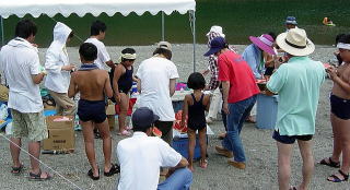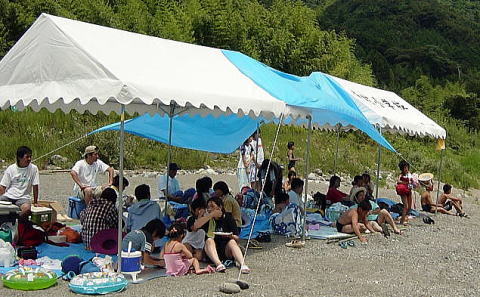 今年初の試み流しそうめんも好評であっという間に2.5kgが参加者の胃の中へと消えてゆきました(メモリースチック挿入忘れのため写真は無し ゴメン!!)。